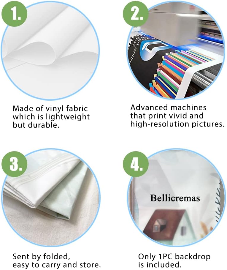 Feature: Vinyl Backdrops are lightweight, durable, high resolution, non-reflective, brightly painted and not waterproof.